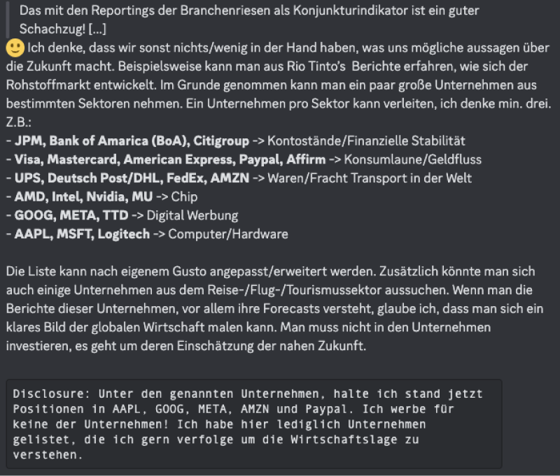 Jetzt Platz sichernTauschen Sie sich mit Gleichgesinnten aus. Nehmen Sie aktiv am Austausch von tiefen Einblicken und wertvollen fundamentale Analysen zu verschiedenen Unternehmen teil.